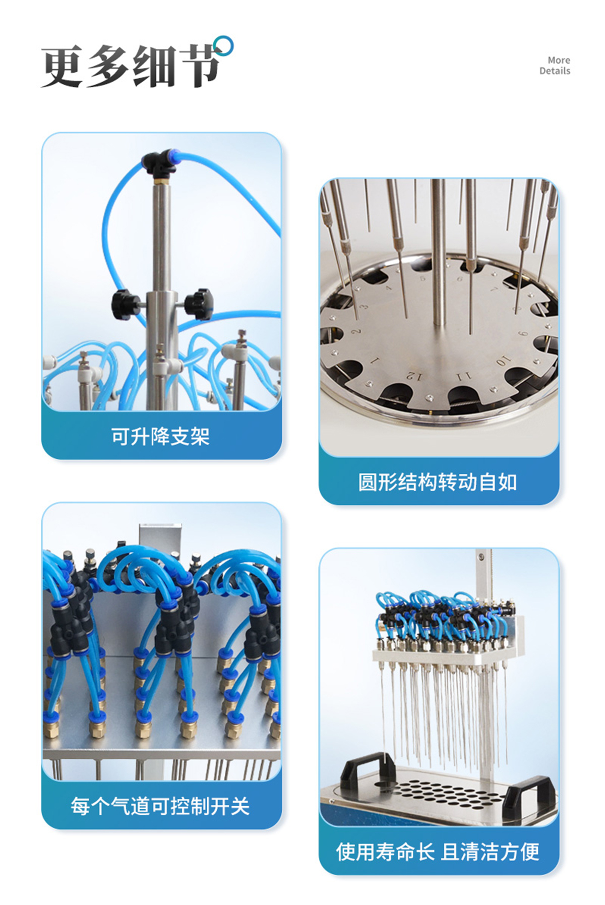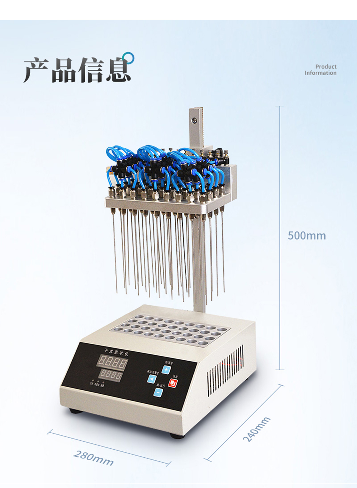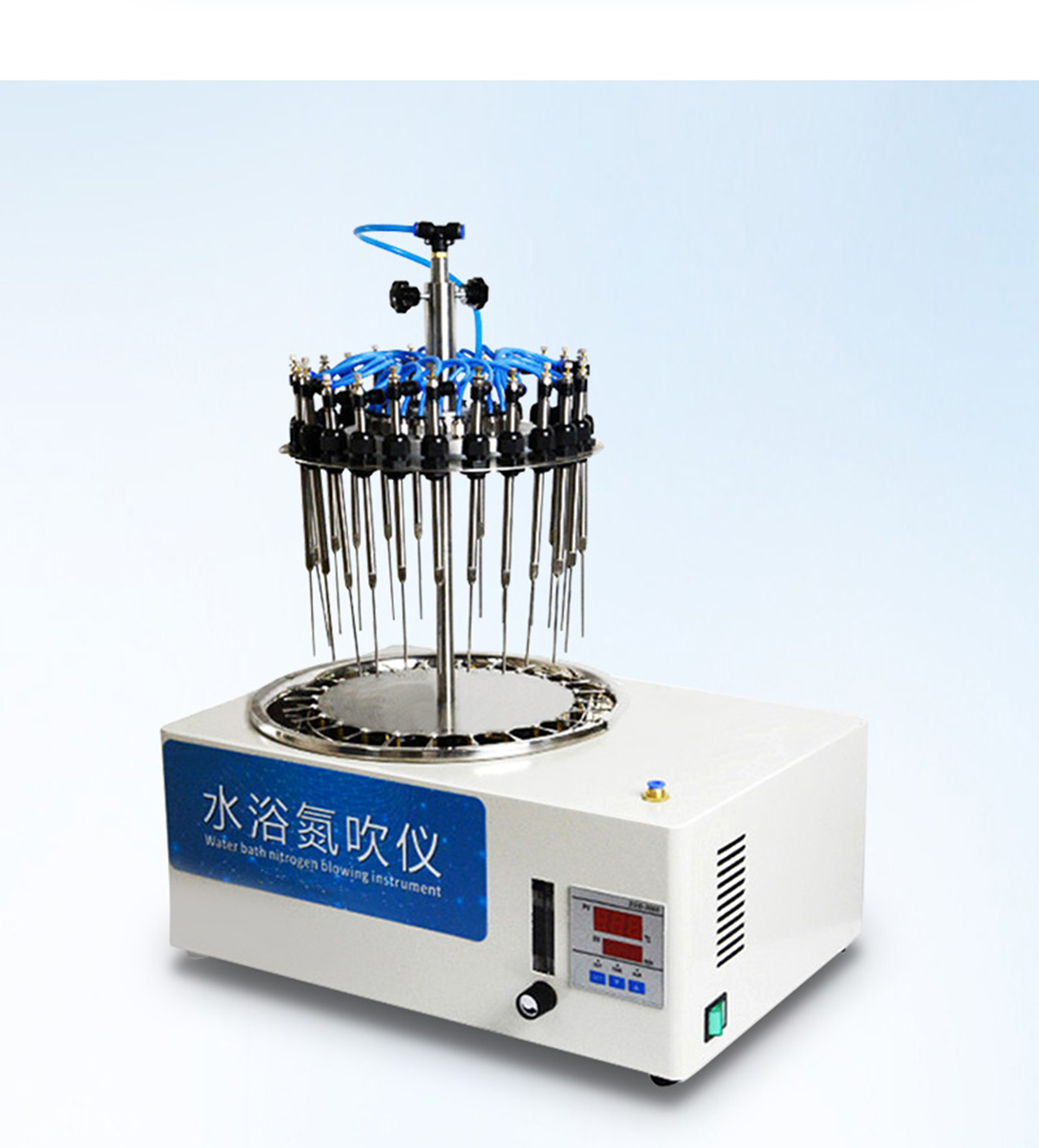 每個(gè)吹針都可以獨(dú)立控制,避免引起交叉污染。儀器氣腔高度可以自行調(diào)節(jié),配備標(biāo)準(zhǔn)氣針長度為15厘米。氮吹儀有36個(gè)氣道控制開關(guān),節(jié)約氣體,每根吹氣針的位置可獨(dú)立改變吹掃位置,使之適用不同的樣品容器及不同的樣品位置在濃縮有毒溶劑時(shí),整個(gè)系統(tǒng)可置于通風(fēng)柜中,降低危險(xiǎn)。內(nèi)置超溫保護(hù)裝置,自動(dòng)故障檢測及報(bào)警功能,方便實(shí)用。儀器有LED顯示屏,溫度同步顯示、時(shí)間遞減顯示,可時(shí)時(shí)觀察溫度變化。具有整體溫度更均勻,加熱速度快本產(chǎn)品還可以作為普通的干式恒溫器使用使用起來更簡便,而且溫度也可以達(dá)到150℃,可以更好濃縮樣品