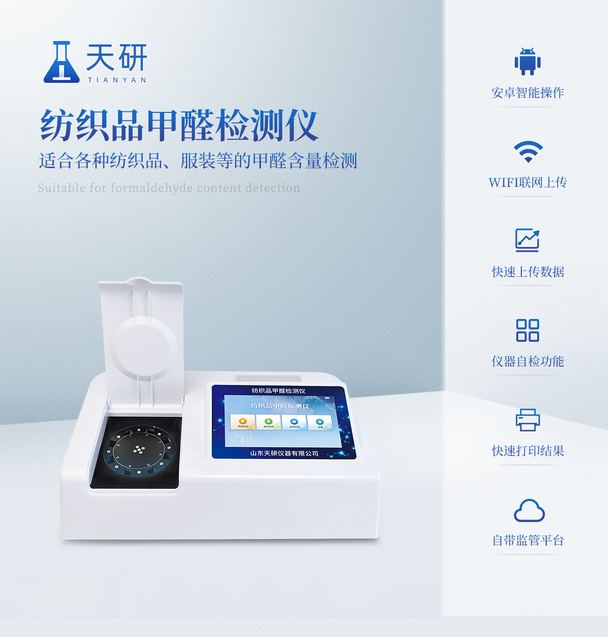 檢測(cè)項(xiàng)目:紡織品中的甲醛測(cè)量范圍:5-800mg/kg分 辨 率:0.001mg/kg檢測(cè)精度:≤±3%線性誤差:≤±1%響應(yīng)時(shí)間:≤1秒 波長(zhǎng)誤差:≤2nm檢測(cè)模式:實(shí)時(shí)檢測(cè)儀器尺寸:44*30*18cm儀器重量:3.5kg工作電源:220V工作濕度:≤95%RH,無(wú)冷凝工作溫度:-30 ~ 50℃工作壓力:-30Kpa ~ 200Kpa執(zhí)行標(biāo)準(zhǔn):《國(guó)家紡織產(chǎn)品基本安全技術(shù)規(guī)范》(GB 18401-2010)《紡織品.甲醛的測(cè)定.第1部分:游離和水解的甲醛(水萃取法)》(GB/T 2912.1-2009)